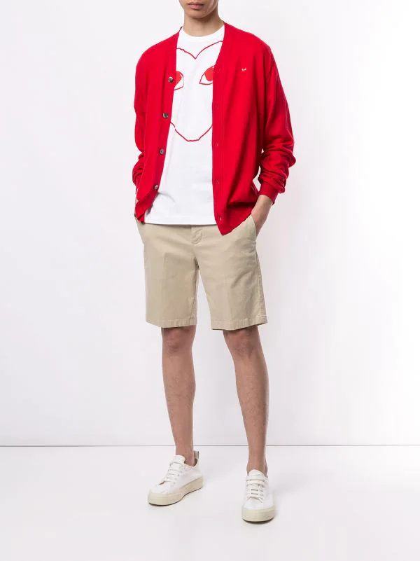 T-shirt à détail imprimé en coton Comme Des Garçons Play avec encolure ras du cou, manches courtes, ourlet droit, logo imprimé au centre et forme détendue.