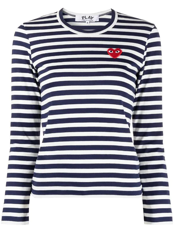 ( Nouvelle Collection ) Comme Des Garçons Play T-shirt Rayé à Manches Longues BLUE/WHITE