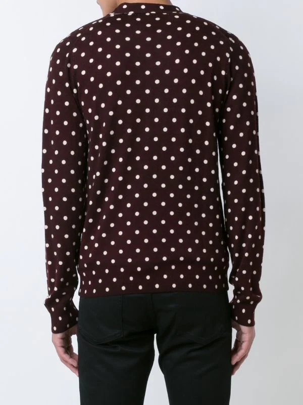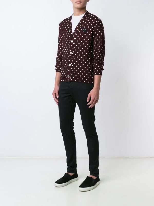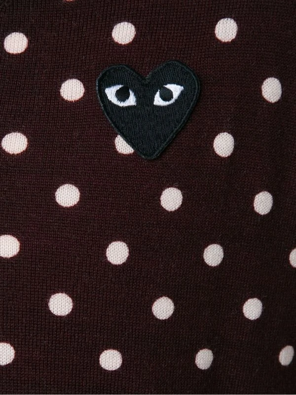 Cardigan à pois en laine bordeaux Comme Des Garçons Play.