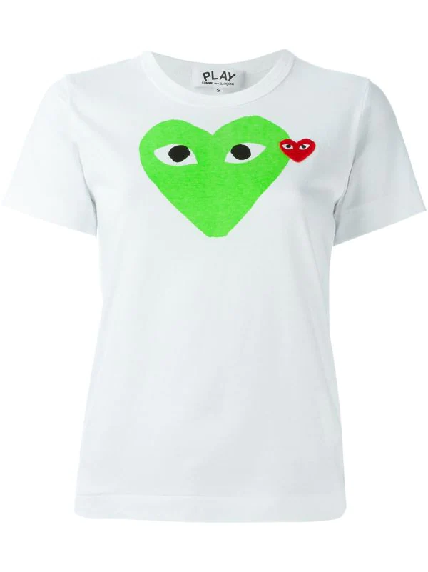 T-shirt imprimé en coton blanc et vert Comme Des Garçons Play avec logo du designer brodé sur la poitrine.
