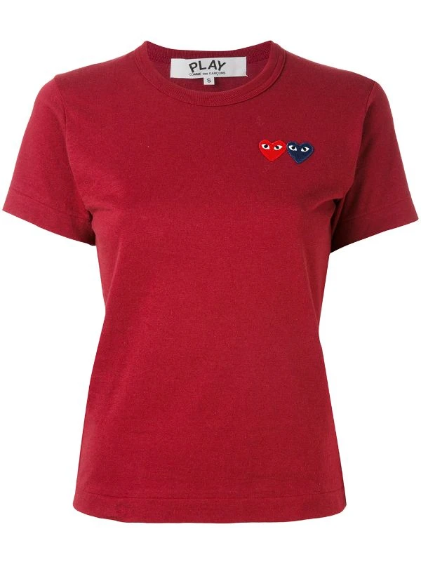 T-shirt brodé en coton bordeaux Comme Des Garçons Play.