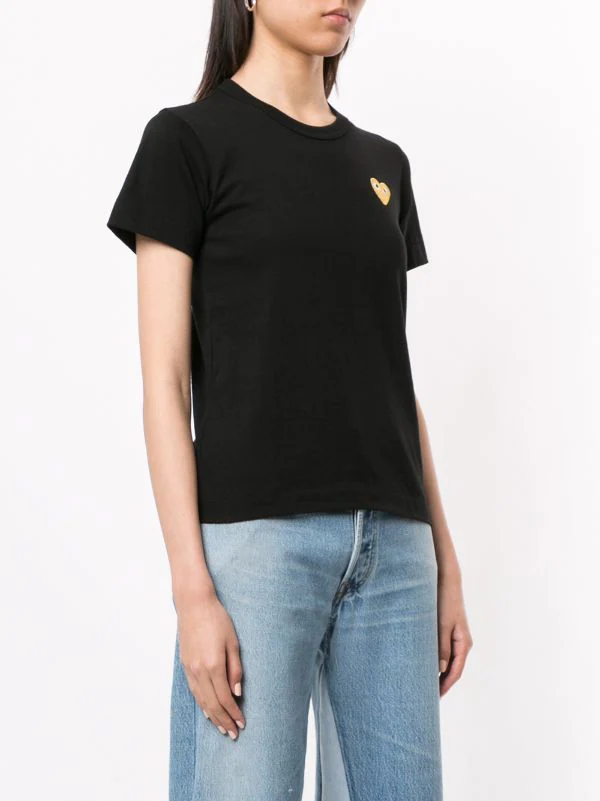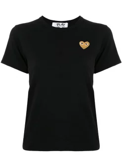 T-shirt à logo brodé en coton Comme Des Garçons Play avec logo contrastant brodé sur la poitrine, encolure ras du cou, manches courtes et ourlet droit.