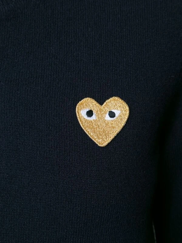 Cardigan en laine bleu marine à patch brodé Comme Des Garçons Play.