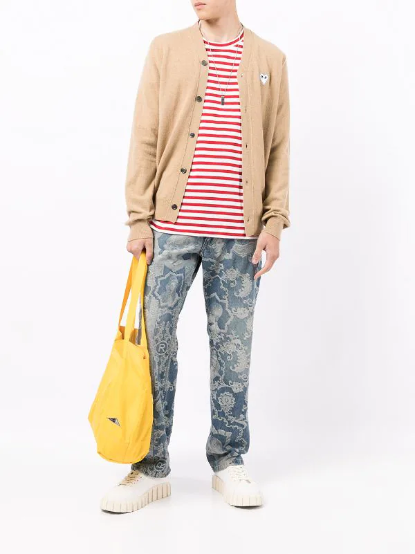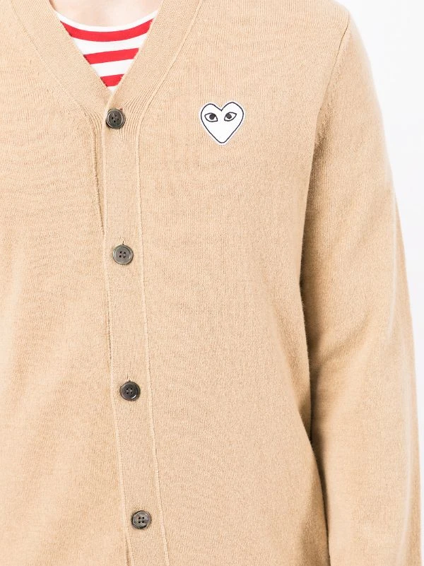 Logo brodé sur la poitrine, boutonnière sur le devant, col v, manches longues, poignets nervurés, ourlet nervuré, ourlet droit. Couleur : marron. Matière : laine.