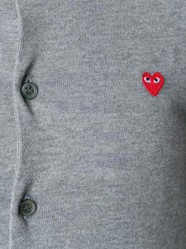 Cardigan boutonné à logo brodé en coton gris Comme Des Garçons Play.
