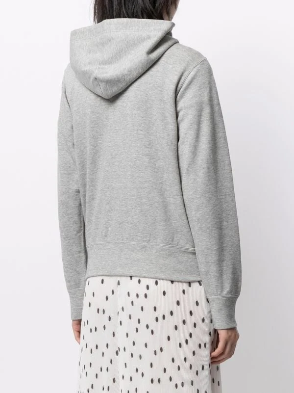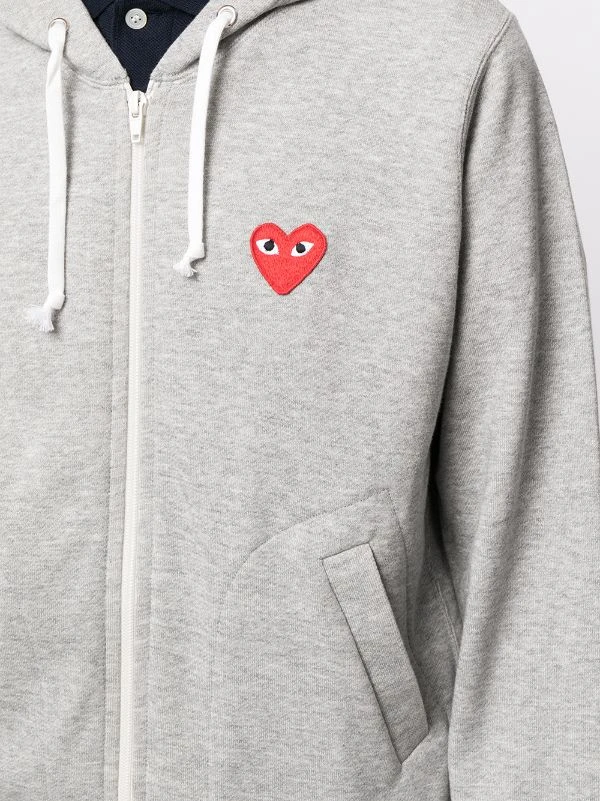 Patch cœur, capuche à lien de resserrage, manches longues, fermeture zippée devant, deux poches passepoilées avant. Matière : coton.