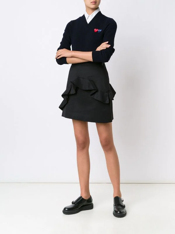Pull à col v en laine bleu marine Comme Des Garçons Play.