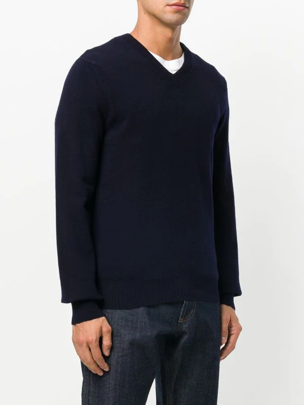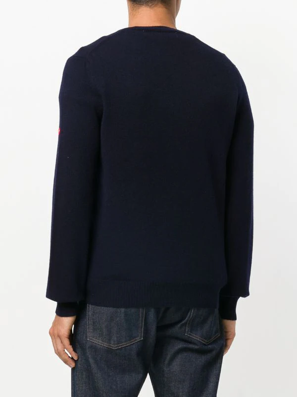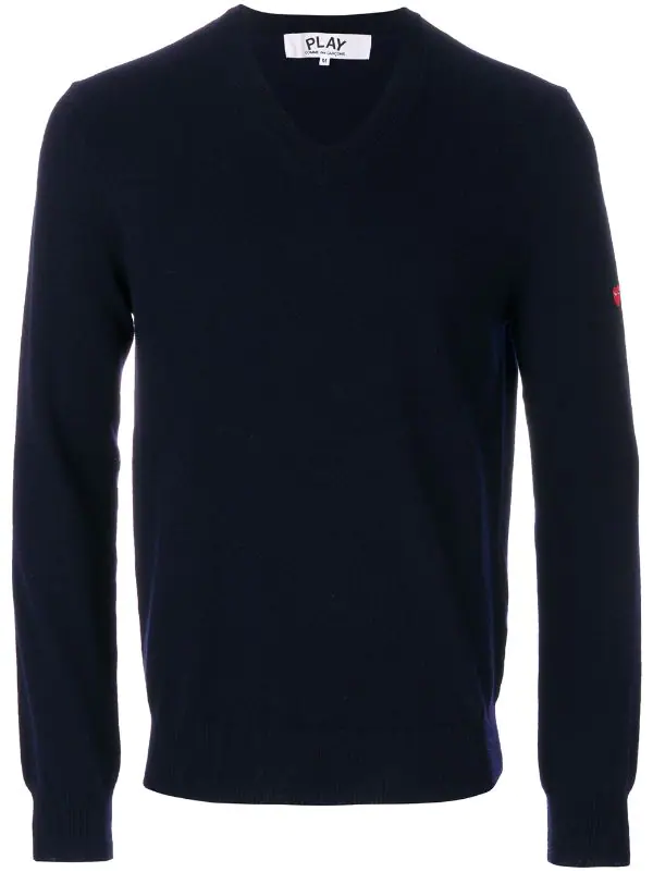Pull en laine bleu marine à détail de cœur rouge brodé Comme Des Garçons Play.