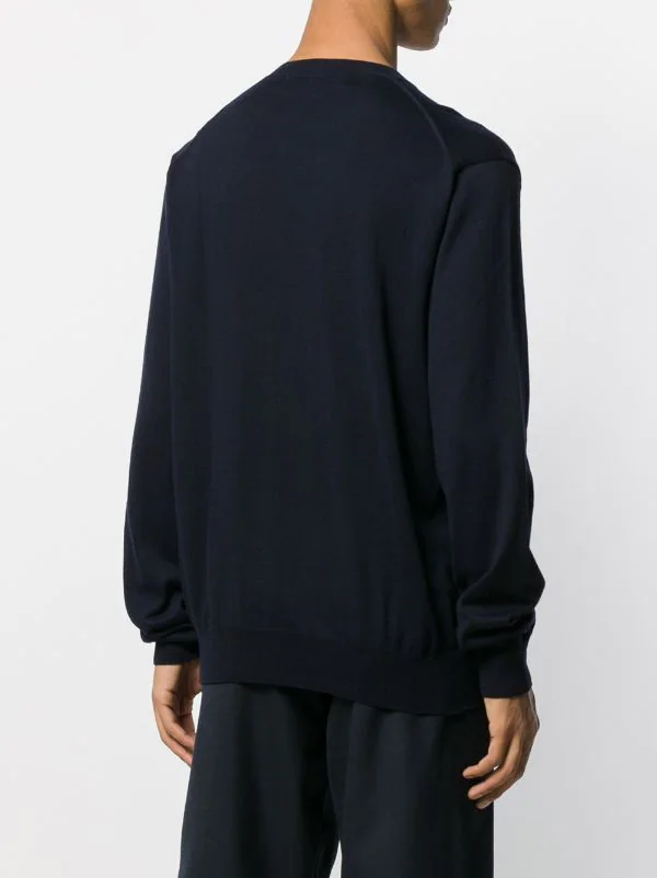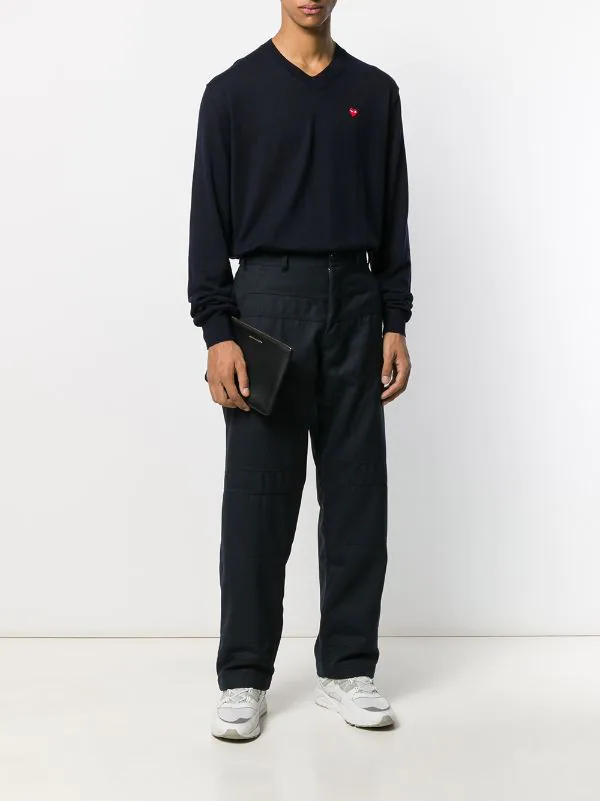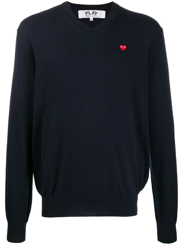 Pull à logo brodé en coton Comme Des Garçons Play avec col v, manches longues, ourlet et poignets nervurés et logo contrastant brodé sur la poitrine.