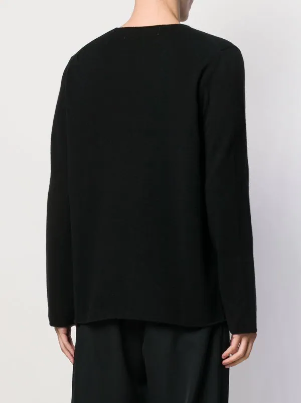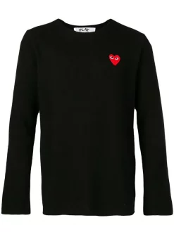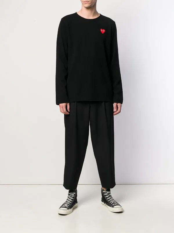 Pull à patch logo en laine Comme Des Garçons Play avec encolure ronde, manches longues et ourlet droit. Couleur : noir.