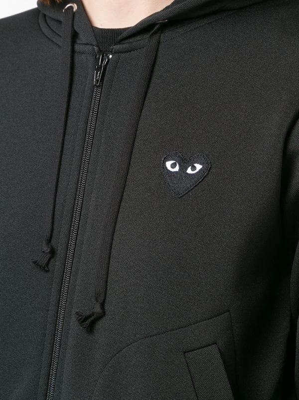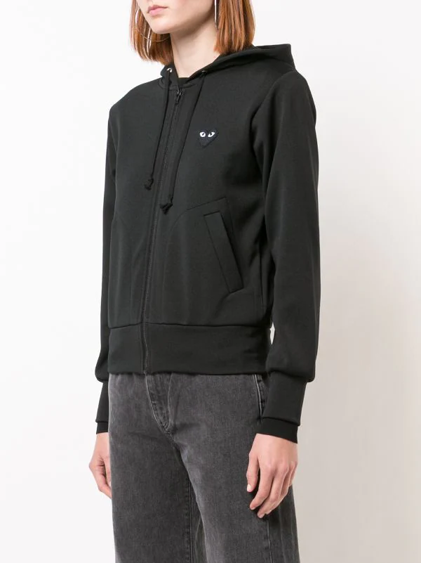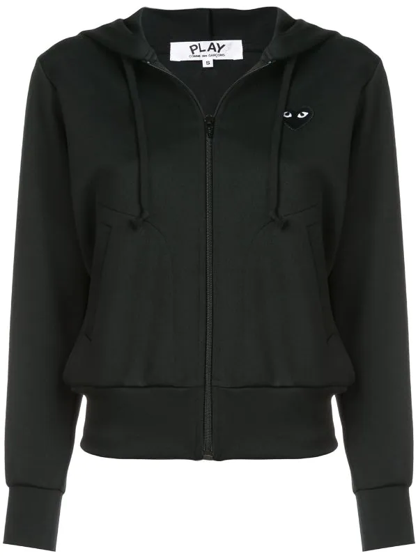 Sweat à capuche zippé Comme Des Garçons Play avec lien de resserrage, manches longues et coupe courte. Couleur: noir.
