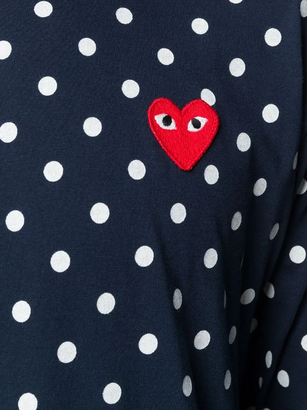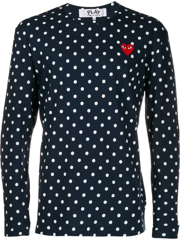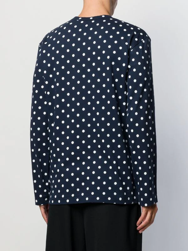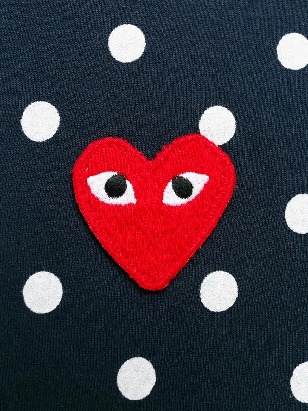 Sweat à pois en coton Comme Des Garçons Play avec encolure ras du cou, manches longues, poignée droite, forme détendue et motif de pois. Couleur : bleu.