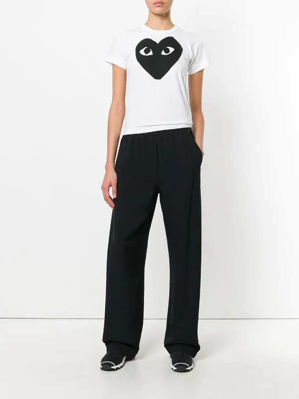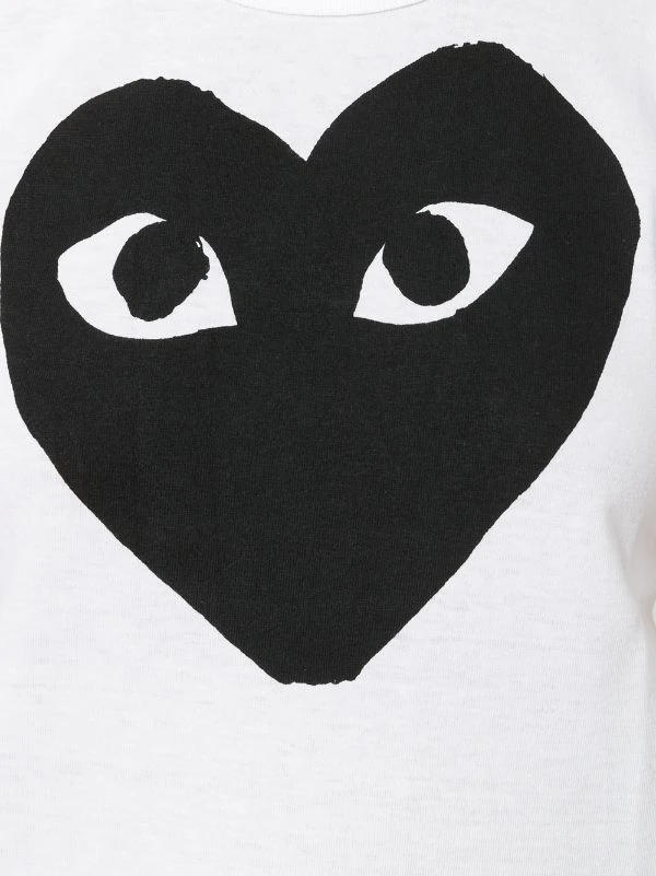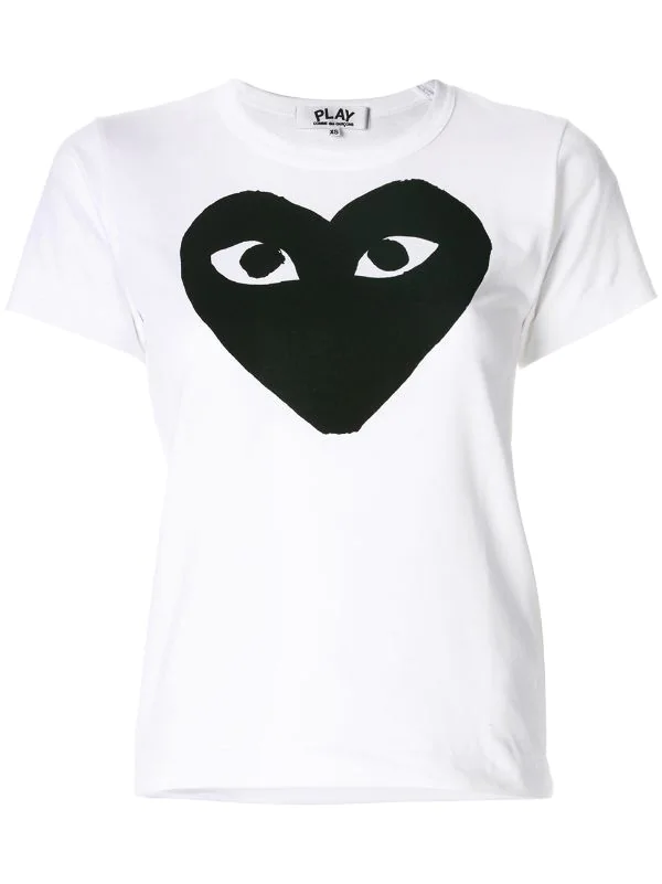 T-shirt en coton blanc à imprimé de cœur noir Comme Des Garçons Play avec encolure ras du cou, manches courtes et ourlet droit.