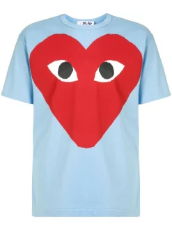 T-shirt à logo imprimé en coton Comme Des Garçons Play avec imprimé graphique, manches courtes, ourlet droit et ourlet classique. Couleur : multicolore.