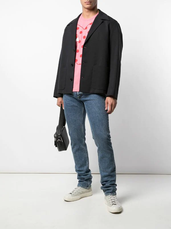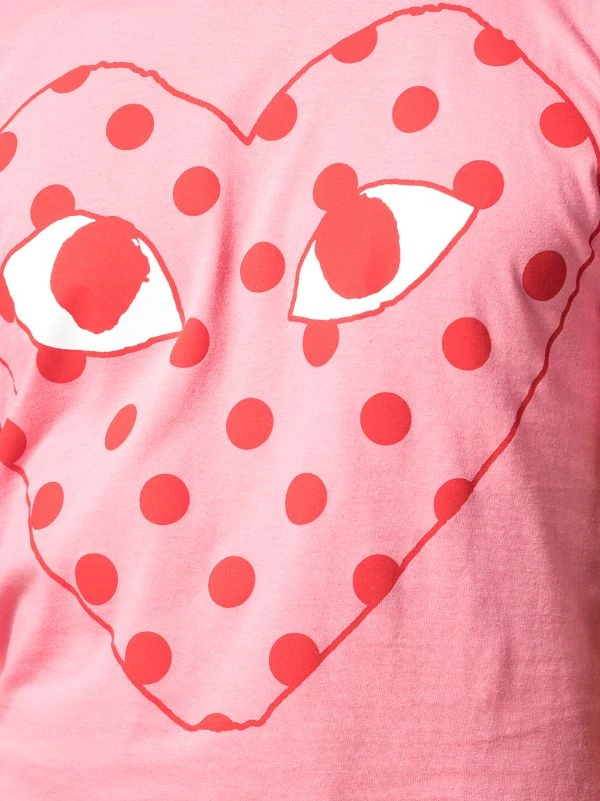 T-shirt à logo imprimé en coton Comme Des Garçons Play avec encolure ronde, manches courtes, logo imprimé sur le devant et ourlet droit. Couleur : rose.