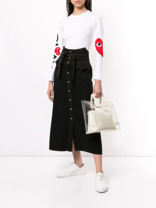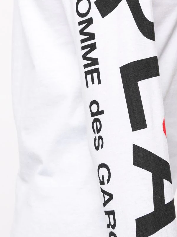 T-shirt à logo imprimé en coton Comme Des Garçons Play avec logo imprimé, encolure ras du cou, manches longues et ourlet droit.