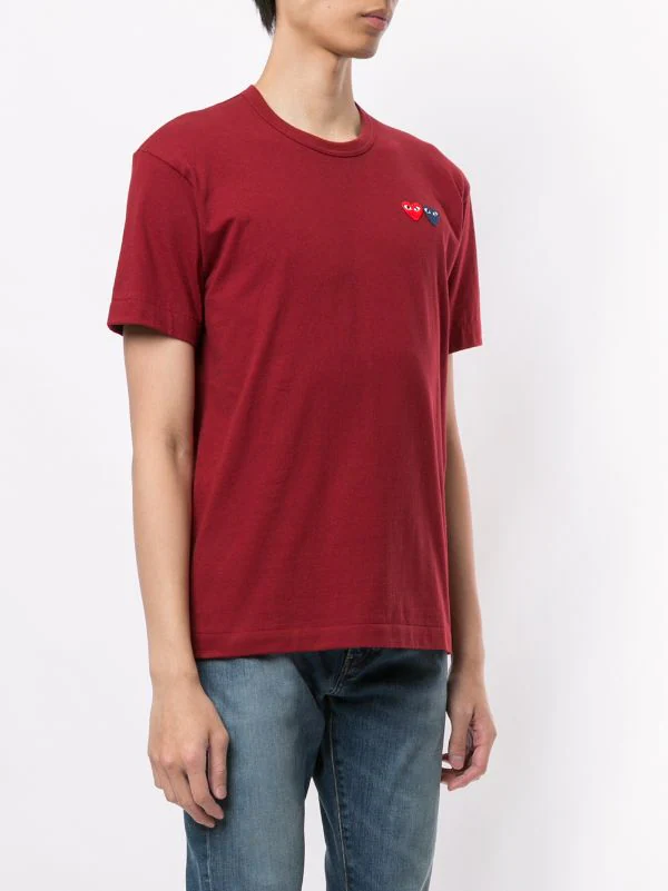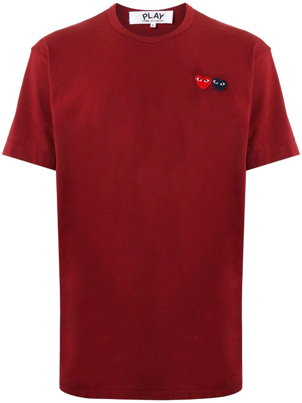T-shirt à patch logo en coton Comme Des Garçons Play avec encolure ras du cou, manches courtes, appliques et ourlet droit.
