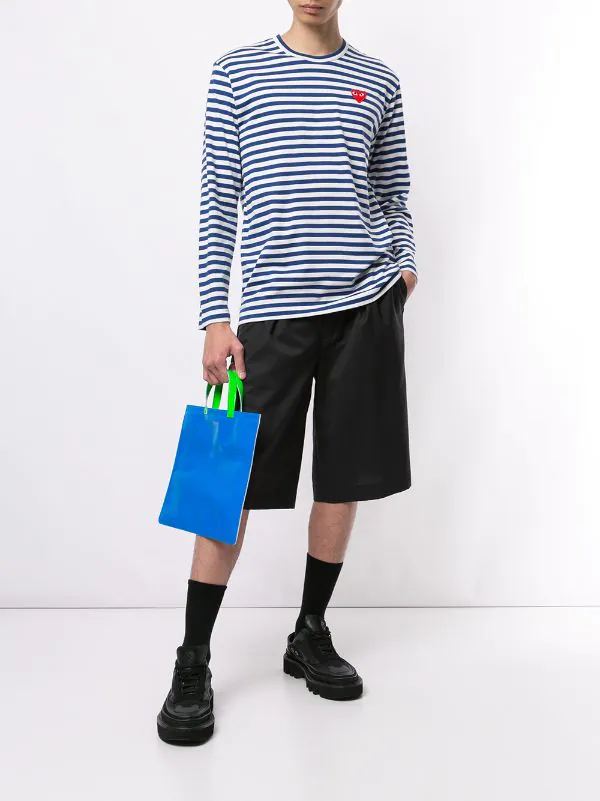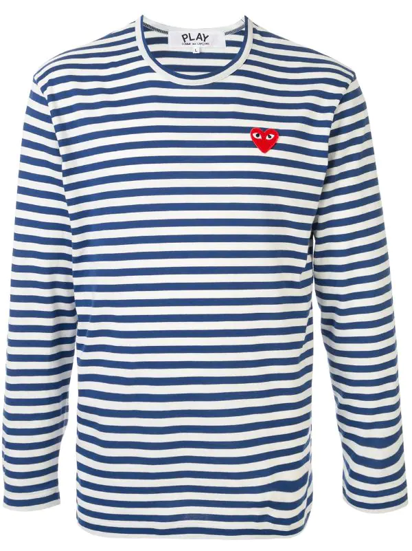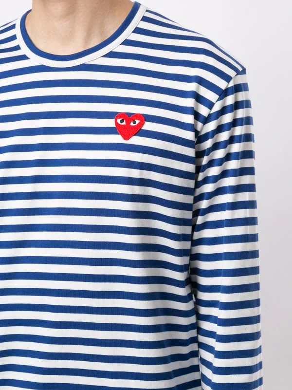 T-shirt à rayures en coton Comme Des Garçons Play avec logo du designer brodé sur la poitrine, encolure ronde, manches longues et ourlet droit.