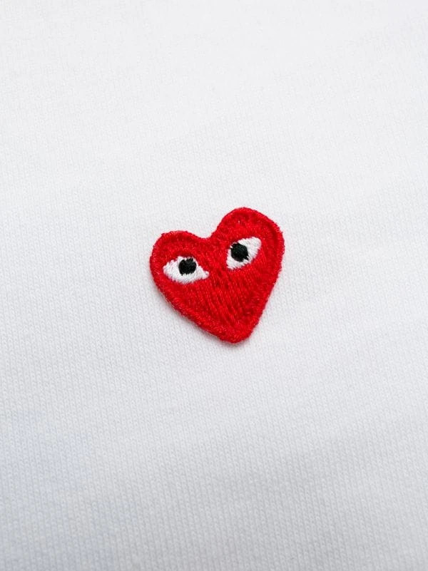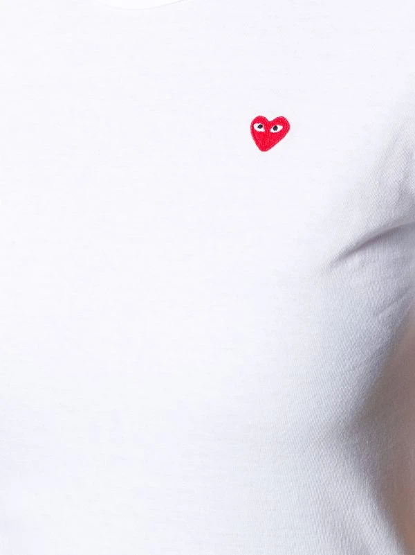 T-shirt Heart en coton Comme Des Garçons Play avec encolure ras du cou et logo contrastant brodé sur la poitrine. Couleur : blanc.