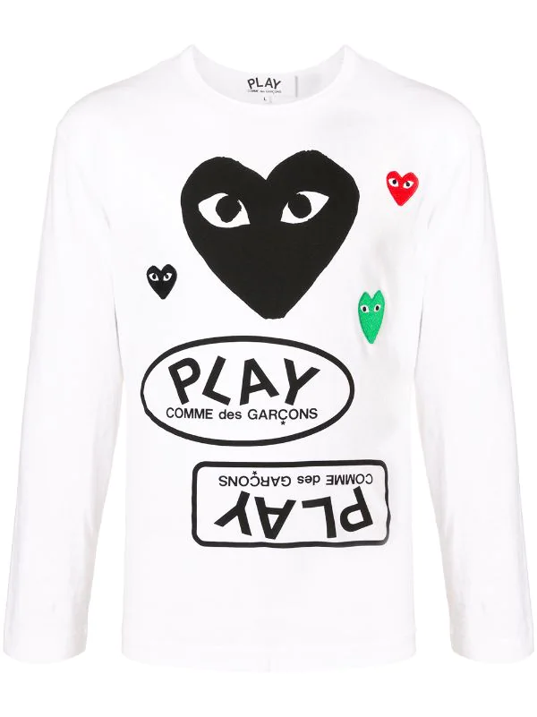 ( Nouvelle Collection ) Comme Des Garçons Play Grey/white T-shirt Rayé à Manches Longues Femme