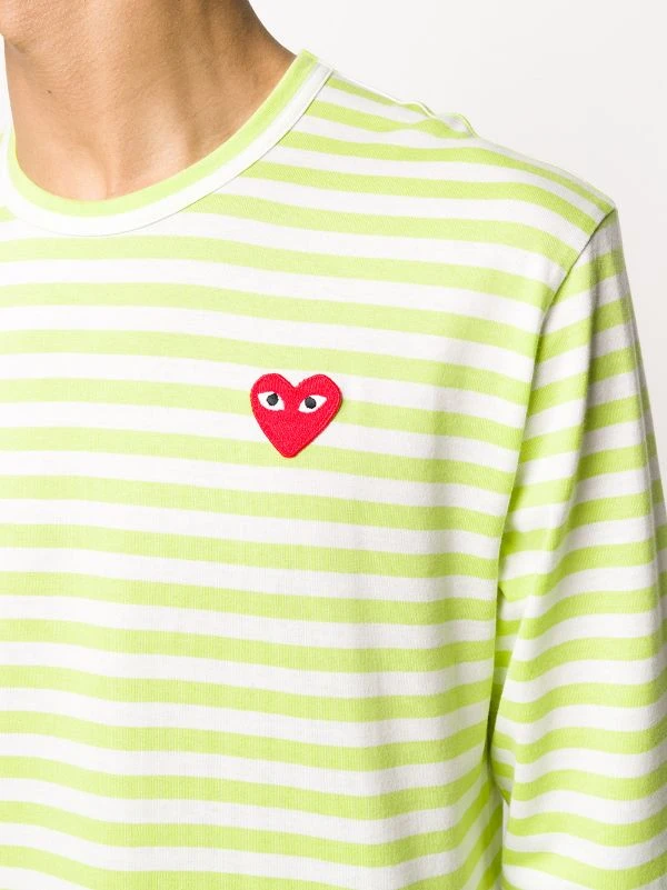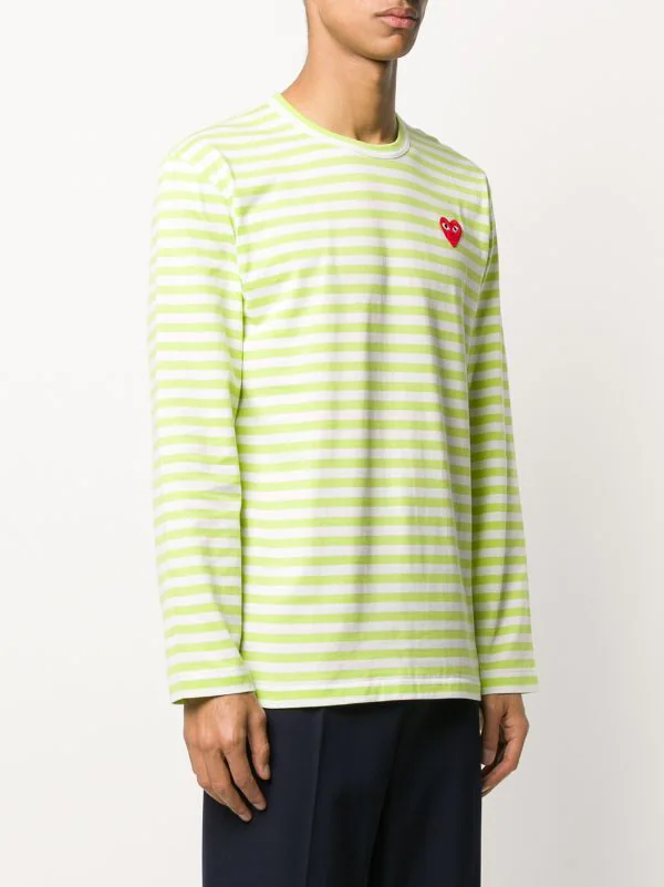 T-shirt rayé à patch cœur en coton Comme Des Garçons Play avec encolure ras du cou, manches longues et ourlet droit.