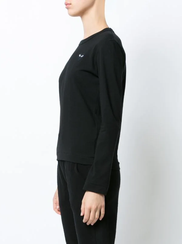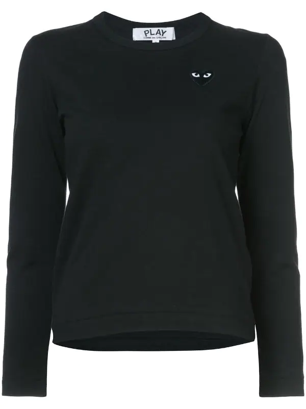 Top à patch cœur en coton Comme Des Garçons Play avec logo contrastant brodé sur la poitrine. Couleur: noir.