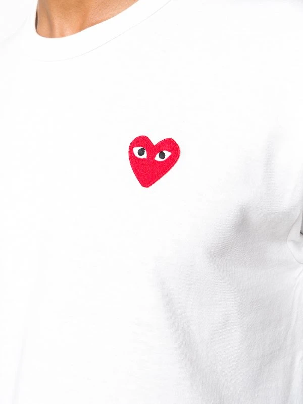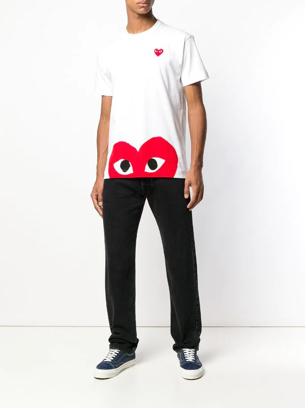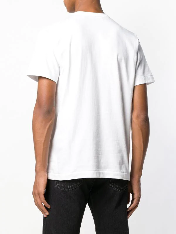 T-shirt en coton rouge et blanc à logo imprimé devant Comme Des Garçons Play avec encolure ronde, manches courtes et ourlet droit.