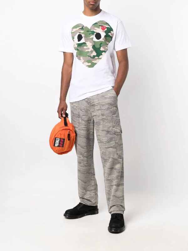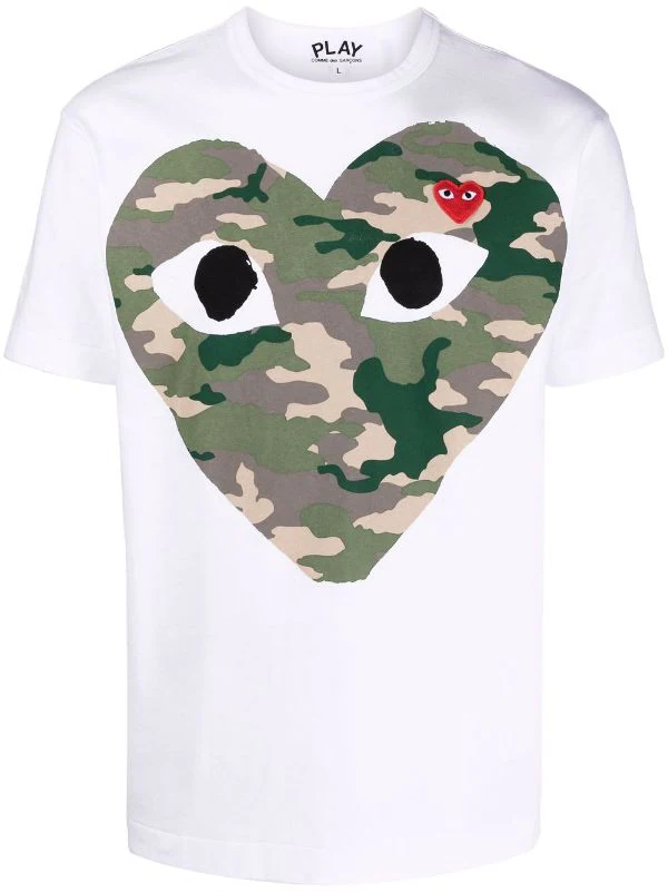Imprimé cœur signature, imprimé camouflage, encolure ras du cou, manches courtes, ourlet droit. Couleur : blanc. Matière : coton.