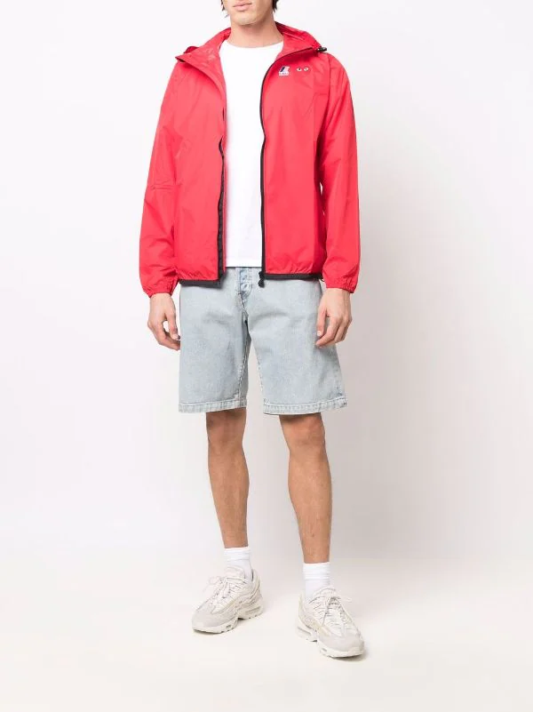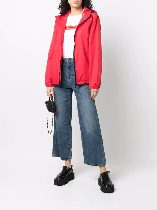 Patch poitrine à logo, patch cœur signature, léger, fermeture zippée devant, capuche à lien de resserrage, manches longues, poignets élastiqués, ourlet droit. Couleur : rouge.