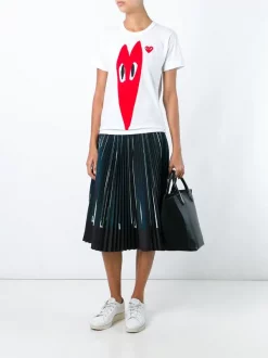 Comme Des Garçons Play WHITE T-shirt à Logo Cœur Imprimé Femme