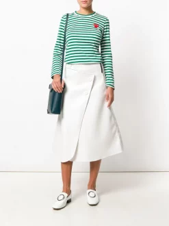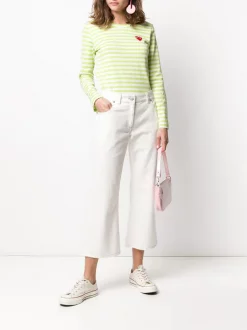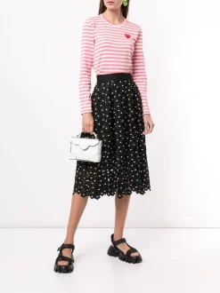 Comme Des Garçons Play T-shirt Rayé à Manches Longues Et Patch Logo PINK