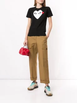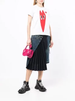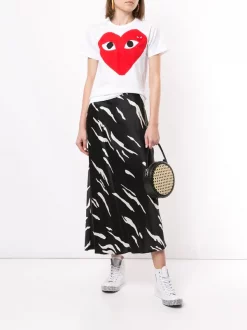 Comme Des Garçons Play WHITE/CAMO T-shirt à Cœur Imprimé Femme