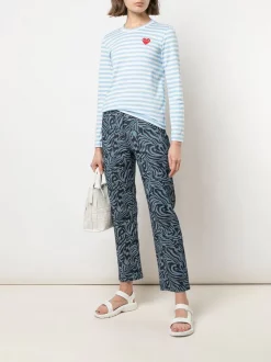 Comme Des Garçons Play T-shirt Rayé à Manches Longues Et Patch Logo BLUE