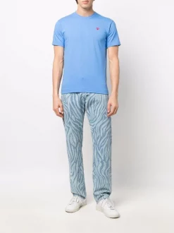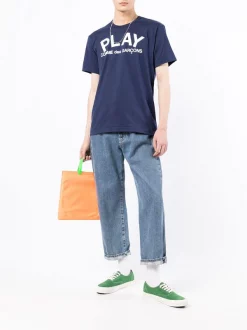 ( Nouvelle Collection ) Comme Des Garçons Play T-shirt Colour Block à Logo Brodé 1 BLUE YELLOW