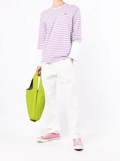( Nouvelle Collection ) Comme Des Garçons Play PURPLE / WHITE T-shirt Rayé à Manches Longues Homme