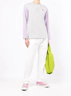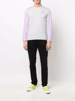( Nouvelle Collection ) Comme Des Garçons Play GREY / PURPLE T-shirt Rayé à Manches Longues Homme