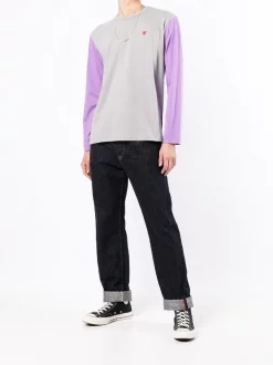 ( Nouvelle Collection ) Comme Des Garçons Play T-shirt Colour Block à Manches Longues GREY / PURPLE