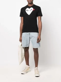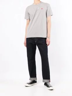 ( Nouvelle Collection ) Comme Des Garçons Play Grey T-shirt Colour Block à Logo Brodé Homme